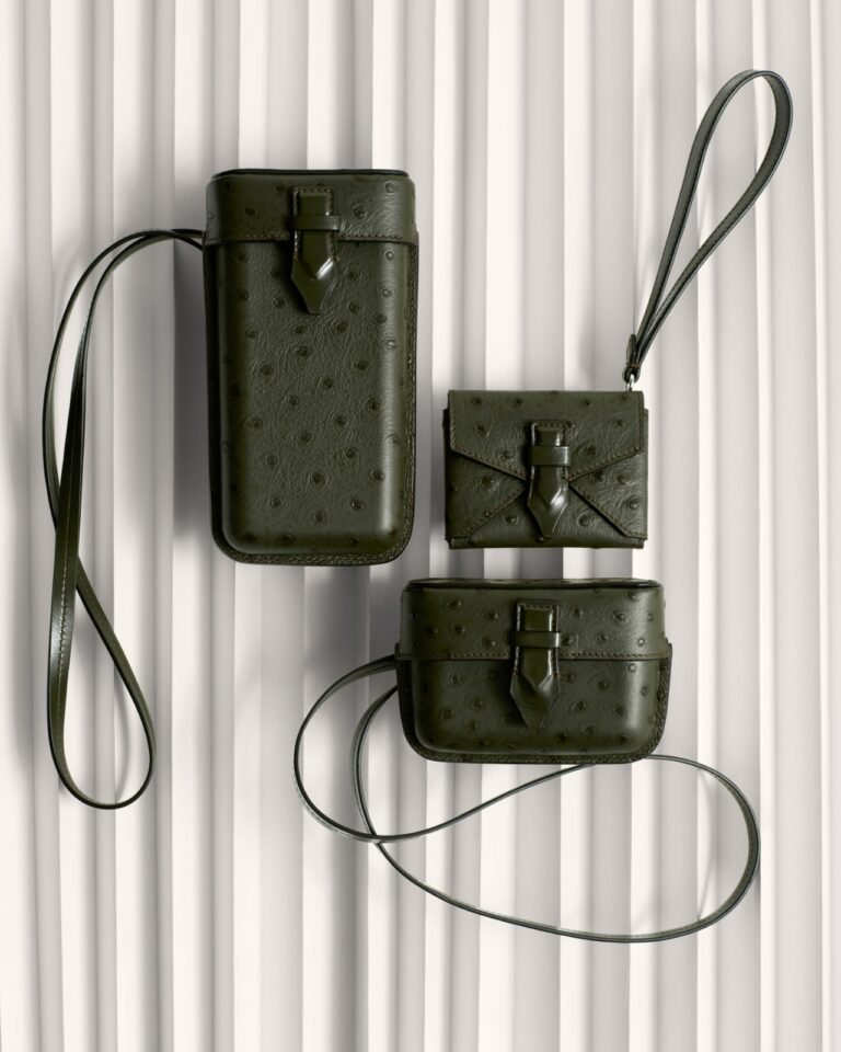 تتوفر حقيبة ميني كروسبودي (Mini Crossbody) بجلد عجل “مايسترشتوك” بألوان الأسود، والأزرق المخملي، والرملي، بالإضافة إلى جلد الموسم الجديد الكاكي المنقوش بنقشة النعامة. وهي تأتي بشكل انسيابي للاستخدام اليومي، مصممة ليتم ارتداؤها عبر الجسم وتتيح الوصول السهل إلى الضروريات. أما حقيبة كلاتش (Clutch)، التي تقدم تحديثاً راقياً لتصميم حقيبة أدوات الزينة الكلاسيكية من مون بلان، فيمكن حملها تحت الذراع أو باليد عبر حزام معصم يتناغم في تصميمه مع شكل ريشة القلم المتكرر. تتوفر حقيبة كلاتش بجلد الموسم المنقوش بنقشة النعامة بلوني الأزرق المخملي والكاكي، إضافة إلى جلد عجل “مايسترشتوك” الأسود.