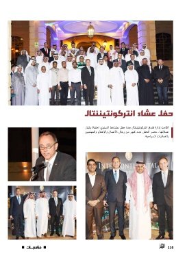 حفل عشاء انتركونتيننتال أقامت إدارة فندق انتركونتيننتال جدة حفل عشاءها السنوي احتفا ًء بكبار عملائها .حضر الحفل عدد كبير من رجال الأعمال والإعلام والمهتمين بالفعاليات السياحية. ■ مناسبــات ■ 110